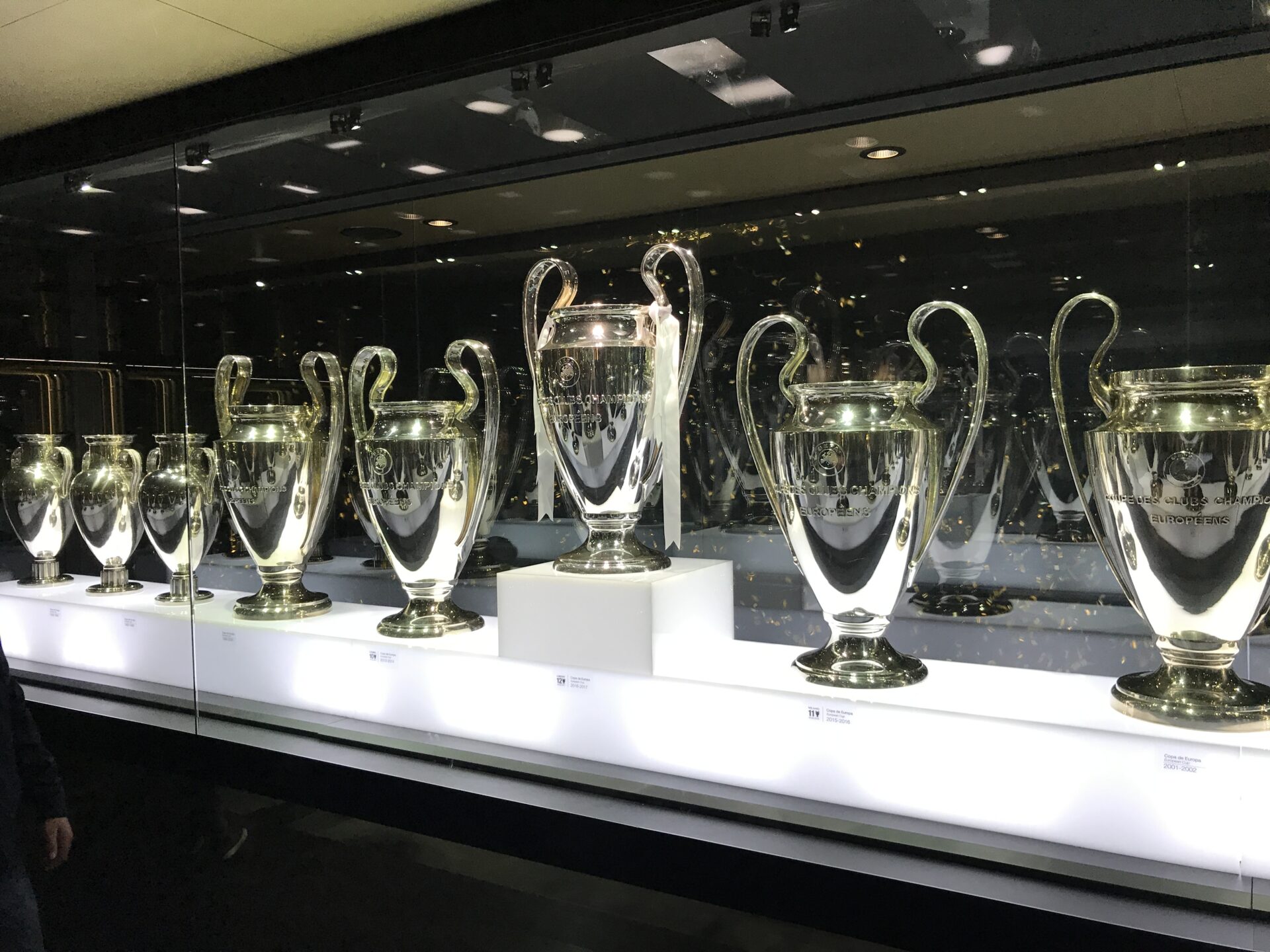 さすがビッグクラブ。ミュージアム施設は大充実。ただ、同時に老朽化を感じた。マドリードに来る直前に、パナソニックスタジアムのツアーにも参加していたのだが、スタジアムの価値は造りではなく、歴史(タイトル)で決まると感じた。