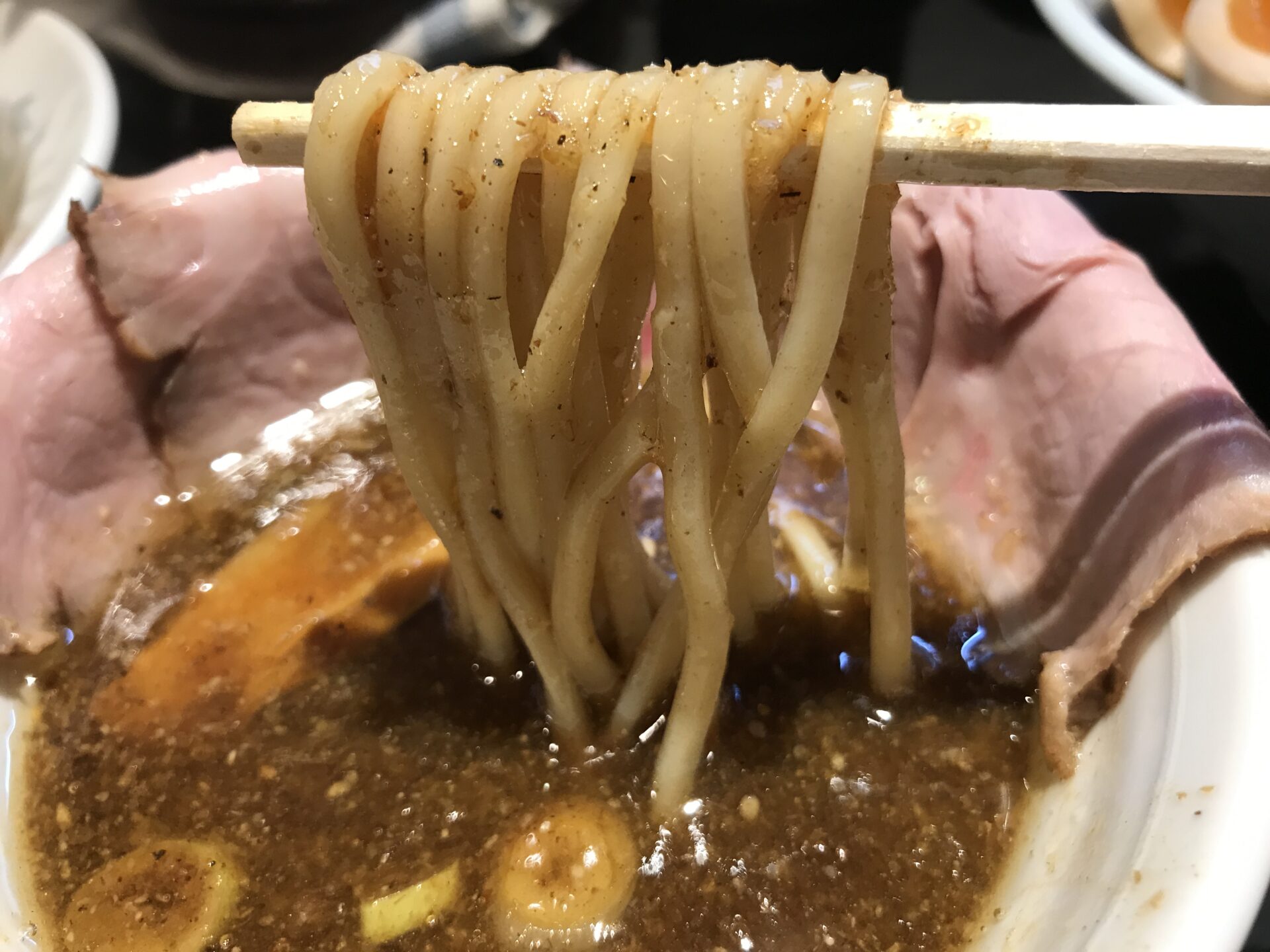 魚介系スープの店は総じて、つけ麺よりラーメンが美味いことが多い気がする。サバ節を利用したスープは少し甘目の濃い口醤油ベース。麺はコシが強い中太麺。サバ節がどのように効いているのかは正直分からないのだが、中毒性は高い。前述した「鯖寿司」と相性が抜群。