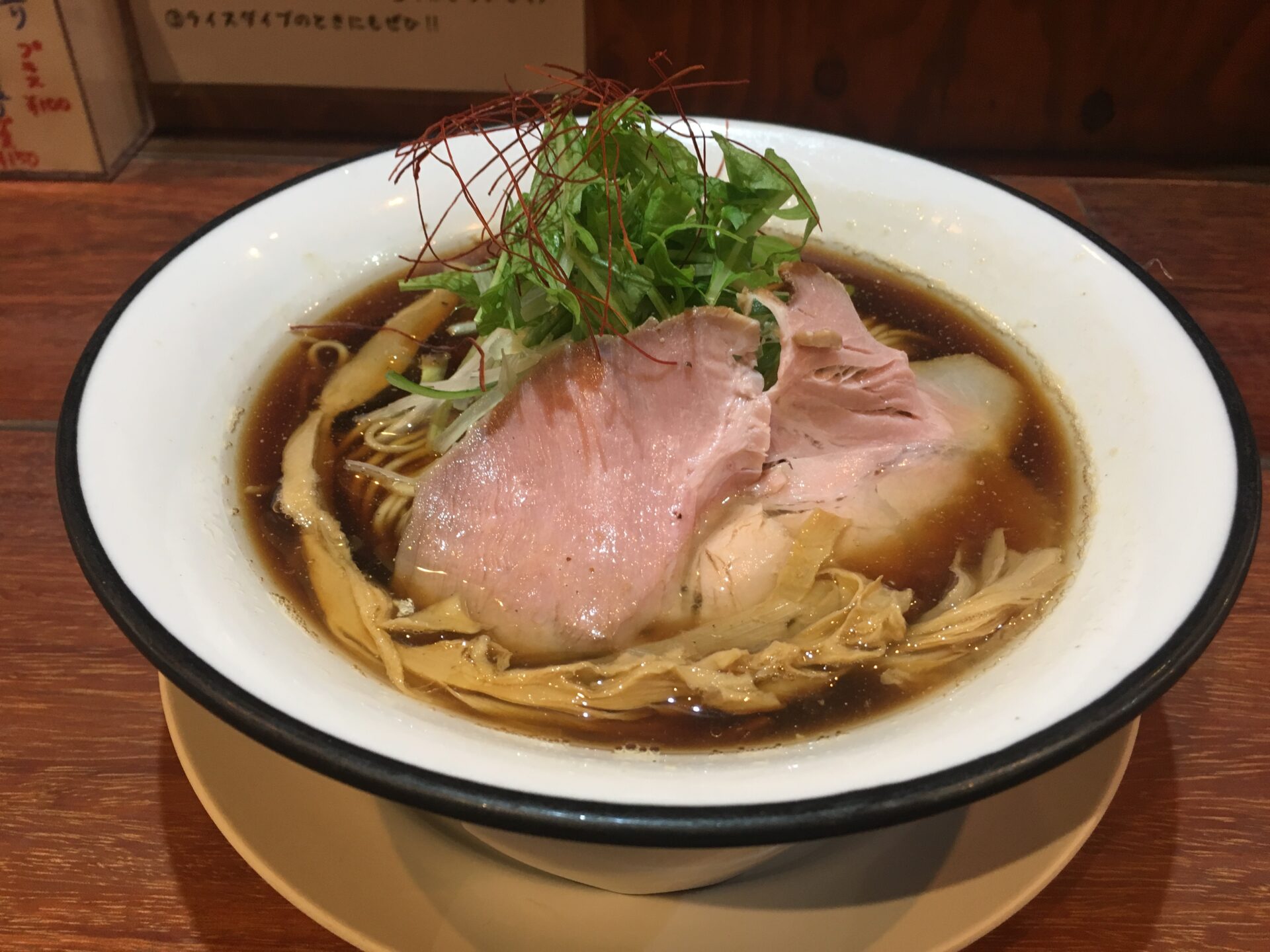 伊丹空港からモノレールで1駅「蛍池駅」から徒歩数分。乗車料金が高い大阪モノレールを乗り降りすることになるので「ガンバ大阪 1day乗車券」の購入がおススメ。メニューは「鶏白湯」「お魚清湯」「まぜそば」の3ジャンルが軸でどれも美味しい。店内はカウンターのみ。お昼時は混雑するが、最長でも20分程度の待ち時間。店員さんの穏やか&フレンドリーな接客もあり、居心地も良い。