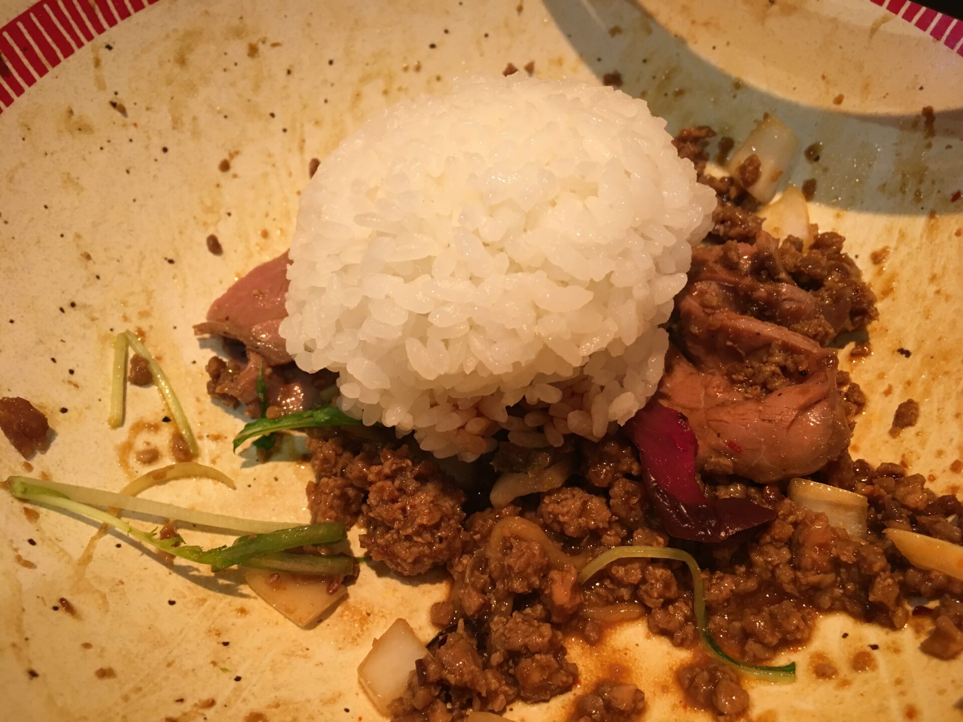 食べるべき一品②:「ほぃの肉盛りまぜそば(ライスダイブ付き)」(950円)