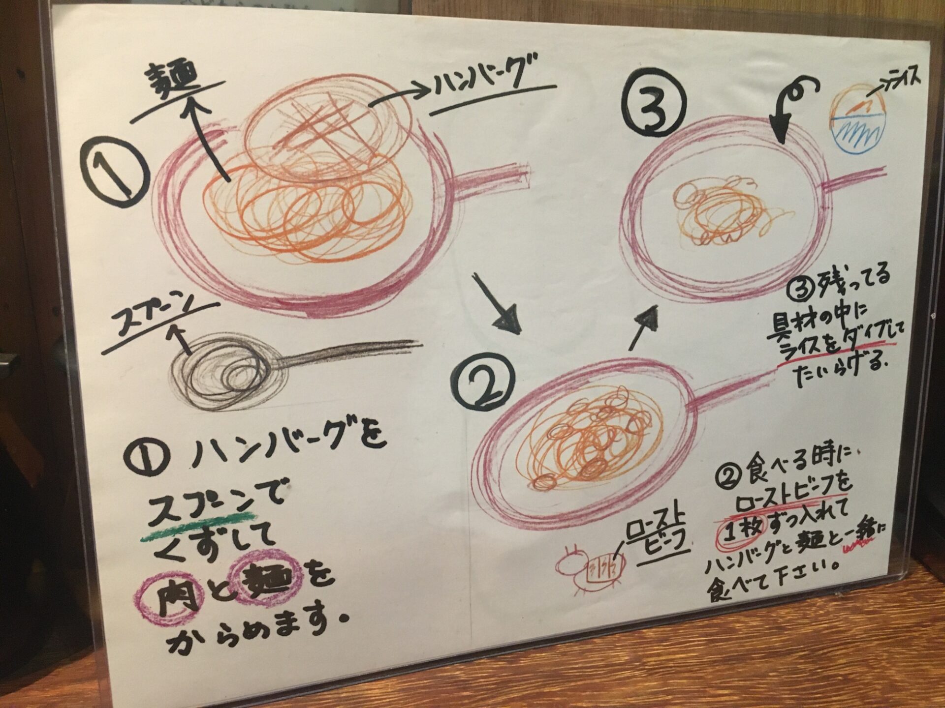 日曜限定発売の「バーグまぜそば」を食べた。夕方には売り切れ必至の大人気メニューを念願の初注文。ビジュアルが強い。「麺屋ほぃ」の特徴である“肉×麺”の最高到達点。まずはハンバーグを崩して麺を絡める。食べる時はローストビーフを絡めて。なんて贅沢なまぜそばなんだ。無心で食べた。