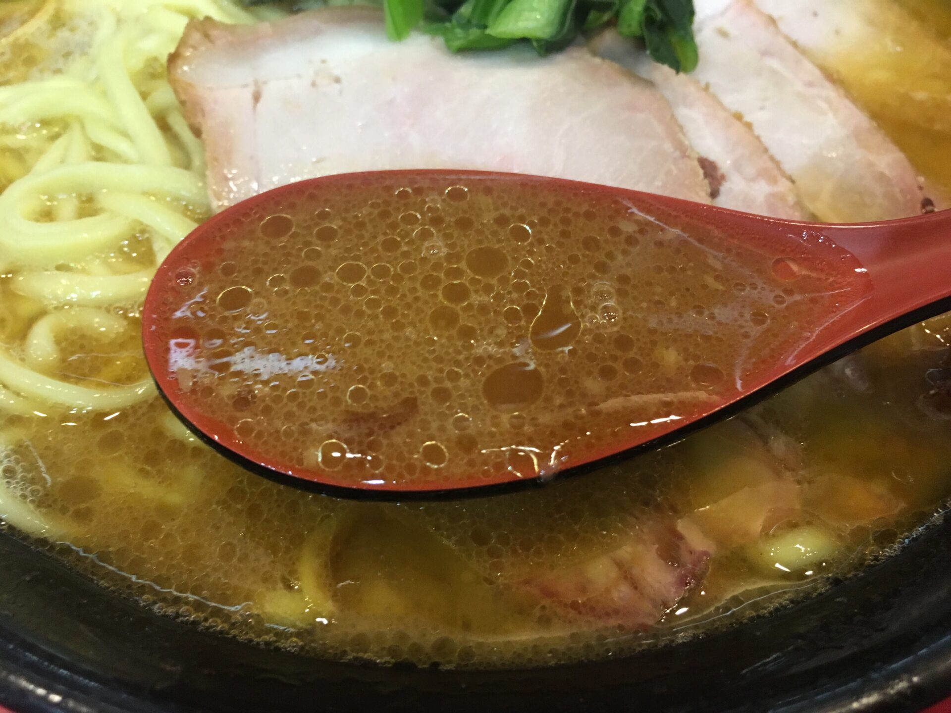 最寄りは横浜駅。ニッパツ三ツ沢球技場へ向かう道中にあり、サポーター的にはありがたいアクセス。1日平均1500人が訪れる人気店ゆえに行列は必至。ランチタイムを外した15時半に訪ねた際でも30分以上の待ち時間が発生した。こってりハイカロリーなスープに合う「タマネギ」や「キャベツ」などの野菜系オプションが美味しい。