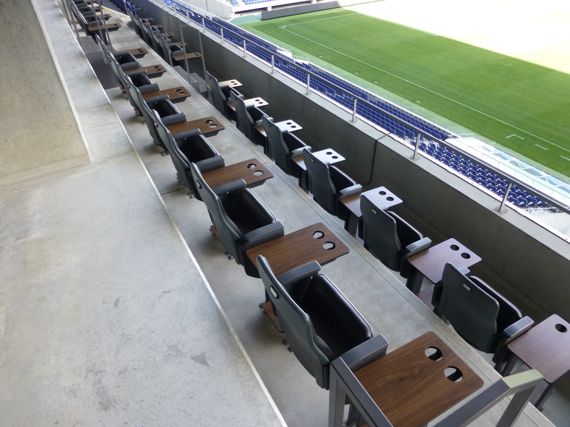 最初に案内されたのは「VIPエリア」。建設前の欧州スタジアム視察で“社交場”として活用する重要性を感じたことから、パナソニックスタジアムの中でも重視したスペースとのこと。内装は「ヨーロッパスタイル」で、同エリアの席数は日本最大級の約2000席。法人向けの販売となり、利用料は1,000万円(高いのか安いの分からない)。アルコールを含む「飲み放題付き」とのことなので、お酒&サッカー好きのお客さんの接待にはもってこいの場所だ。