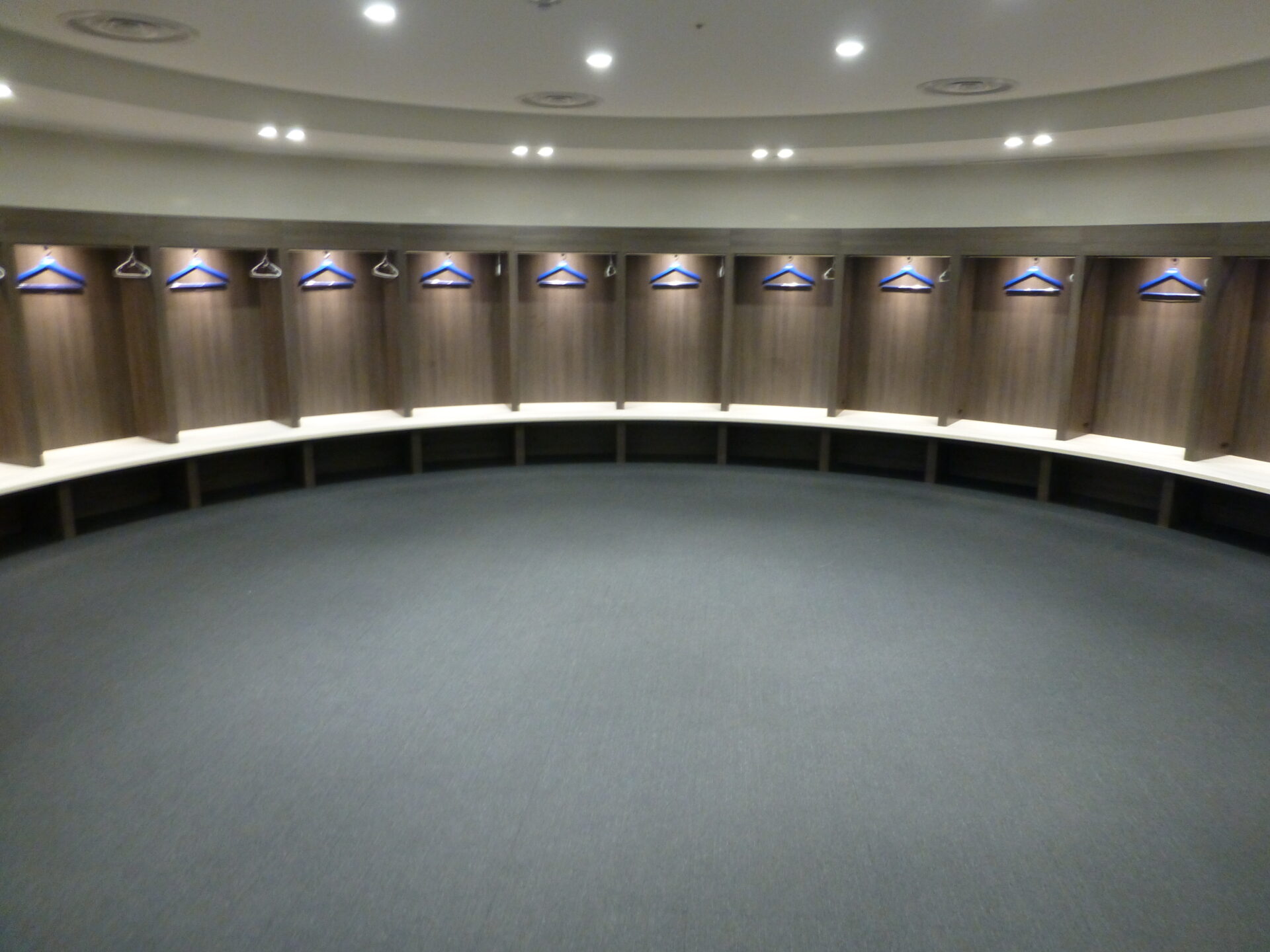 続いて向かったのは、選手が試合時に着替えを行う「ロッカールーム」。パナソニックスタジアムは、ホーム側とアウェイ側でロッカールームの内装がまったく違うのは有名な特徴。ホーム側のロッカールームは音が反響しやすく、どの場所にいても監督の声がクリアに聞こえるようになっているのだとか。ちなみに、ガンバ大阪では選手の座る位置は大体決まっており、遠藤保仁選手が座るロッカーは参加者の大人気撮影スポットになっていた。