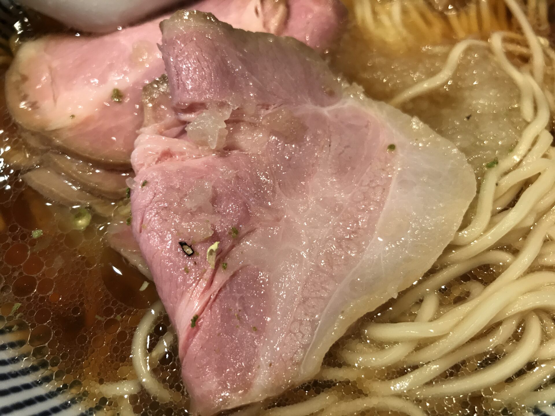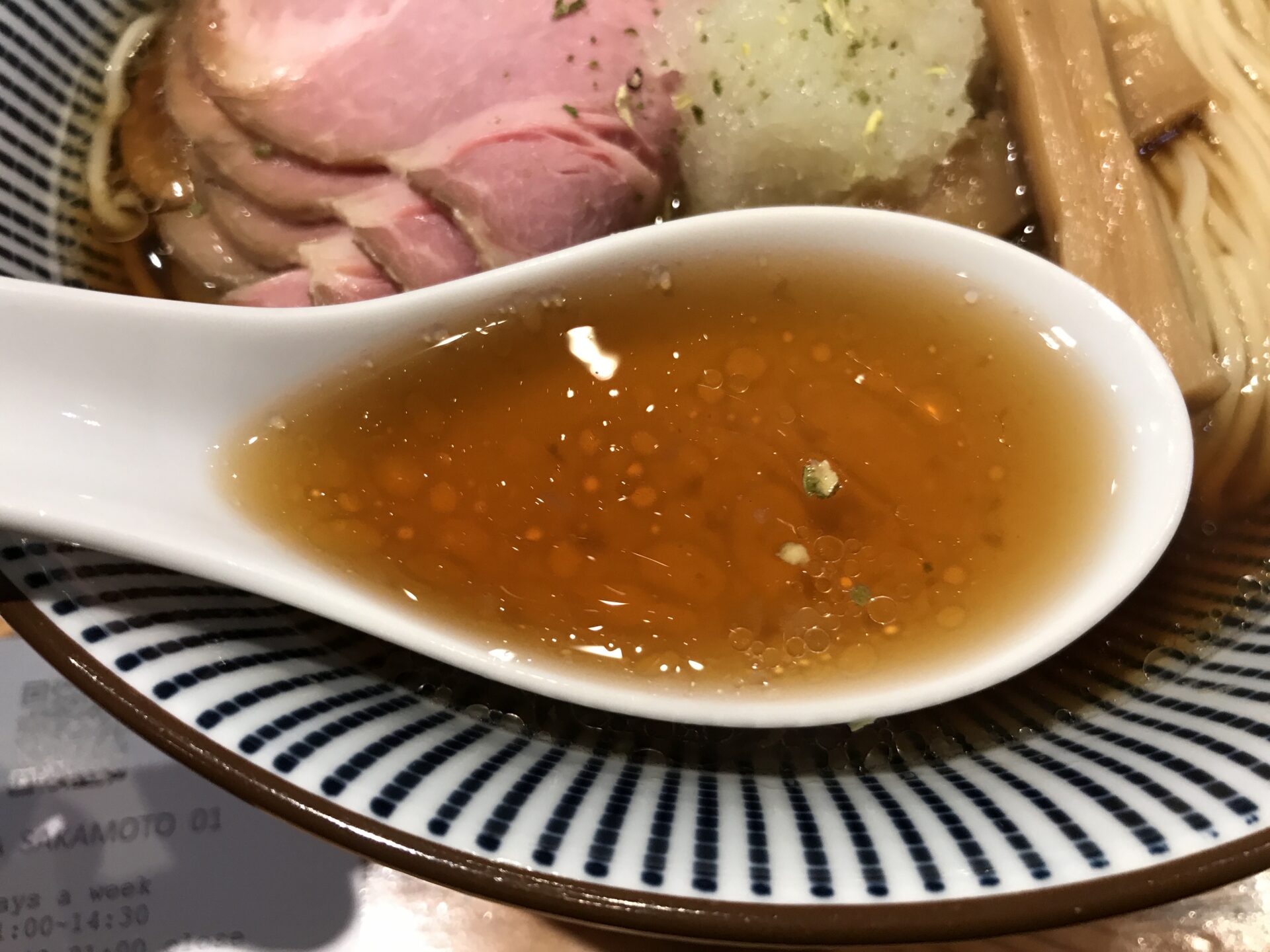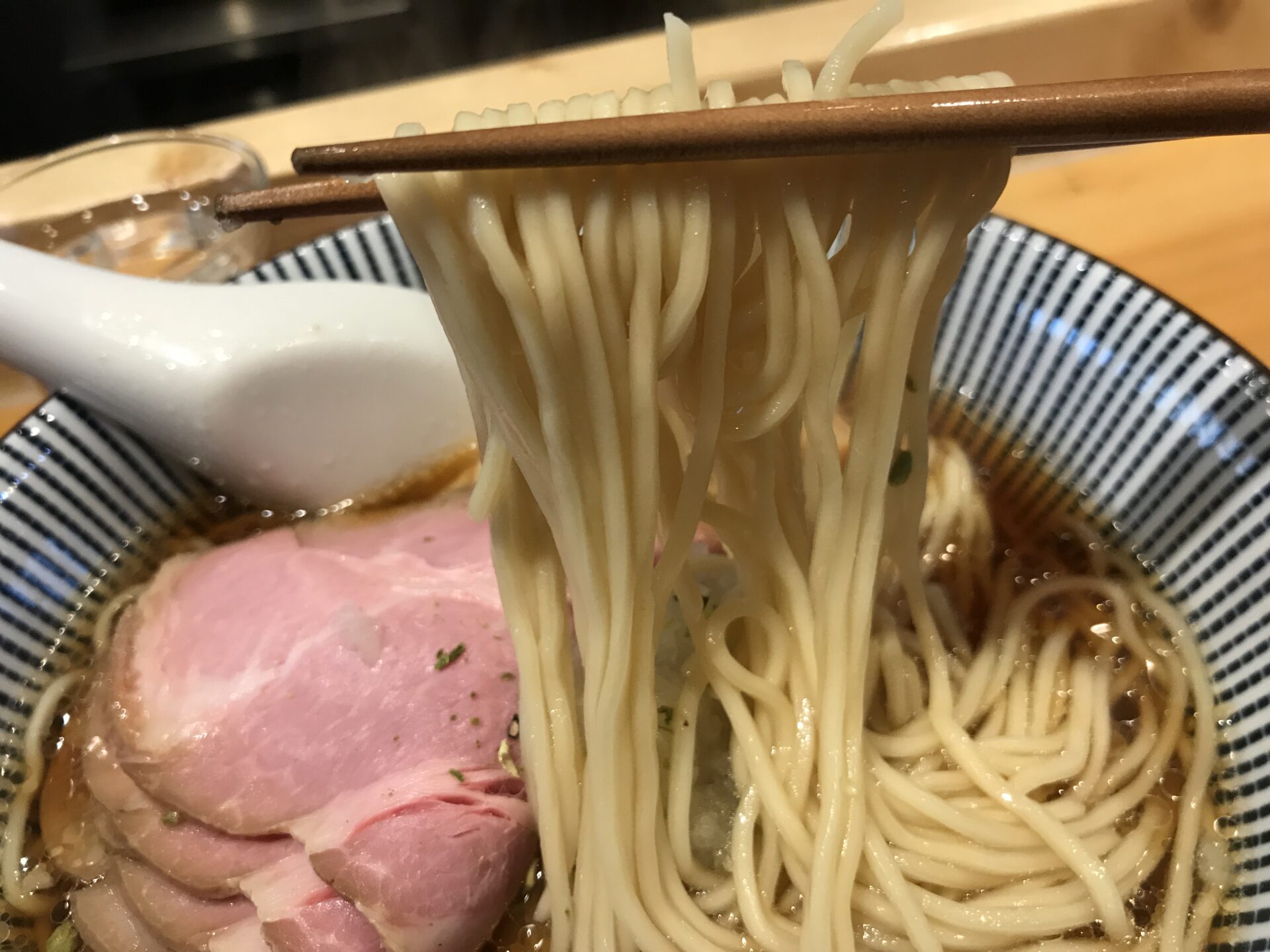 ビジュアルが美しい。まっすぐな麺も、透き通ったスープも、真ん中にトッピングされているきざみ玉ねぎも……バランスが完璧。食べる前に完成度が高いラーメンであることが分かる。