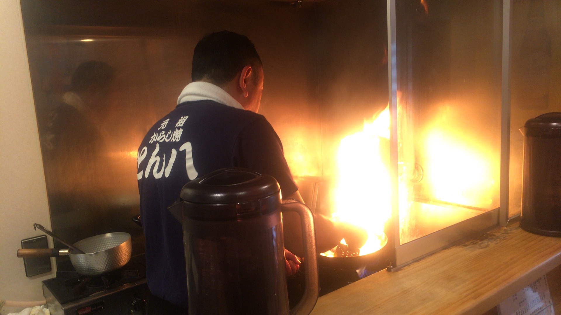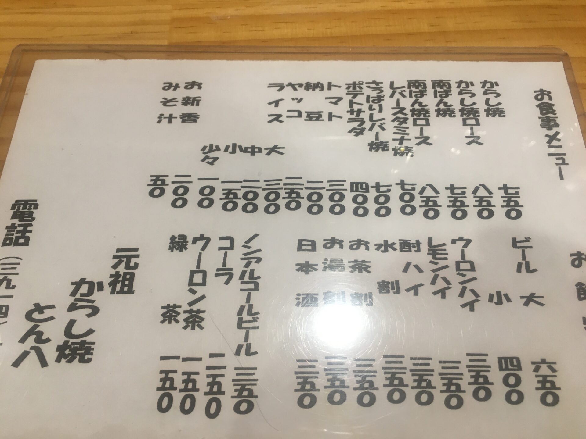 東十条駅から徒歩2~3分。大衆酒場が軒を連ねる一角に出店。オレンジ色の看板が目印。店内はカウンターのみでかなり狭い。おそらく夫婦であろう二人で店を切り盛りされている。お昼からアルコールを飲んで過ごしている常連客と思われる方も多く、満席の場合、さほど回転は早くないので、店の外で待つかの判断は注意が必要。元々はトンカツ屋だったが、まかない料理だった「からし焼」が人気になり今の営業スタイルになったのだとか。