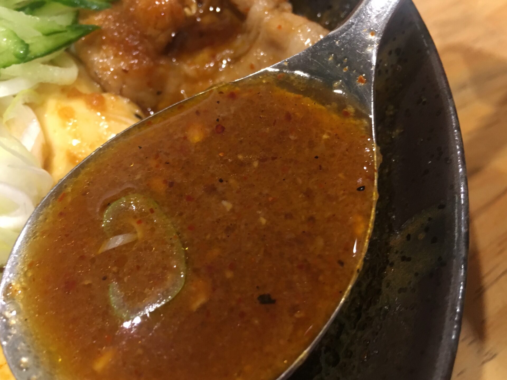 味は類似するものがないオリジナルゆえ、初めて食べた時は感想を伝える言葉が思いつかなかった。にんにく、しょうが、唐辛子がもたらす“汁”はパンチ力の中にも深みを感じさせる。肉の種類は少し値段が高くなるロースも選べるが、豚バラの方が美味い。