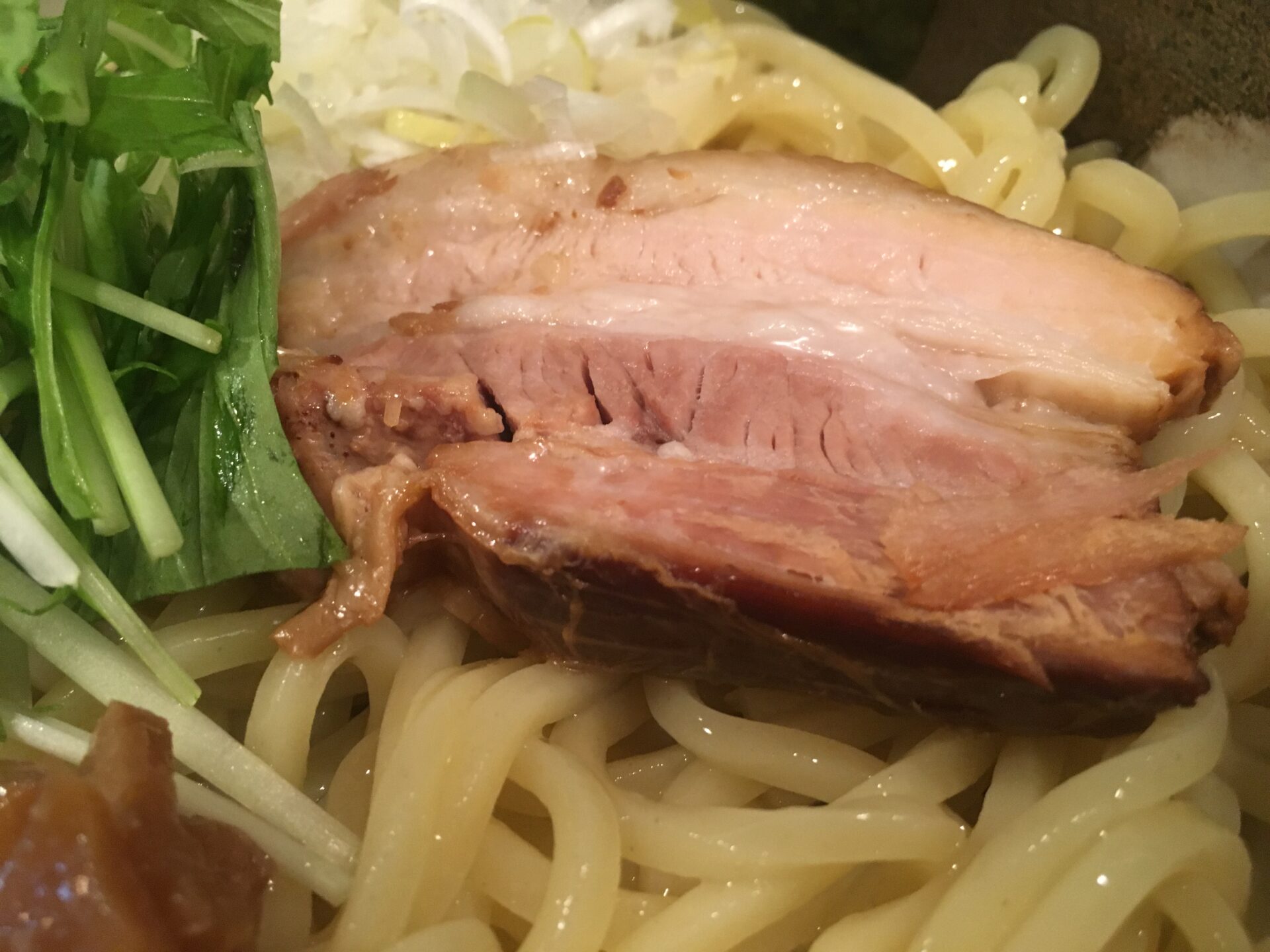 全てのメニューが美味しい。ベストメニューの選定に迷ったが、今回は「特製つけめん」を推す。特徴は“肉”のボリューム。分厚い角煮のようなチャーシューは、アンデス高原豚を使用。柔らかさ、ジューシーさは特筆もの。このチャーシューを細かく刻んだものが豚骨魚介風味の濃厚つけ汁の中にもふんだんに入っている。もはやつけ汁だけでも商品として成立するレベル。麺はタピオカ入りのぷるぷるな食感が最高。ボリュームを忘れてしまう食べやすさ。
