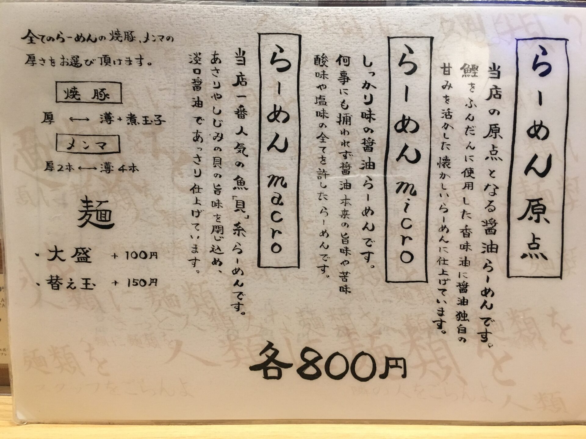 他の2種類のラーメンも美味い。ガツンとした醤油味を味わいたい方は「らーめん micro」。オリジナルの味を知りたい方は「らーめん 原点」をどうぞ。