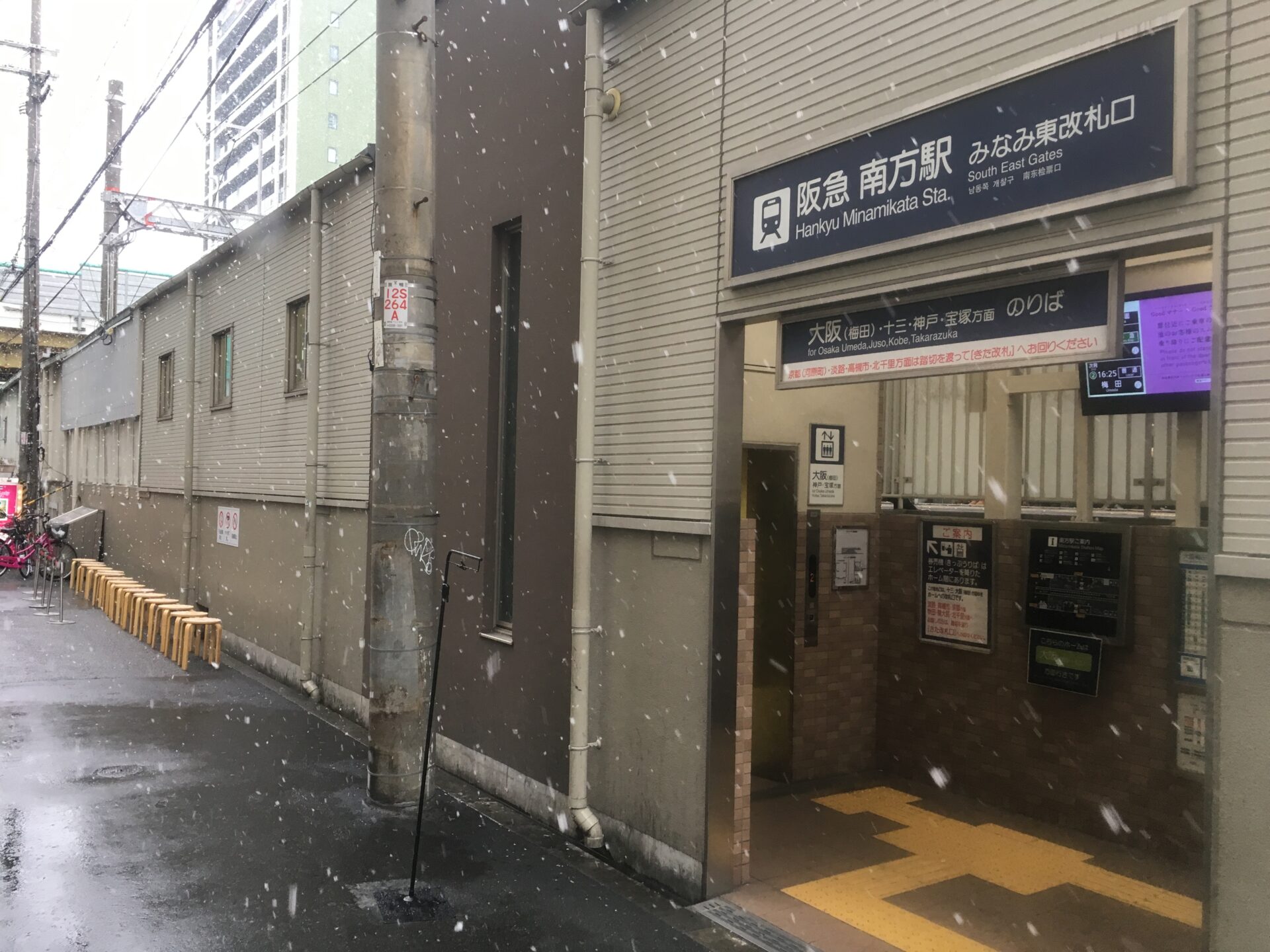 最寄り駅である阪急南方駅の改札から見える長蛇の列は日常の風景である。列の先にはあるのは何のお店か分からない建物。看板もない質素な入口からラーメン屋だと推測するのは難しい。訪問する時間帯によるが、平日で平均30分~45分程度の待ち時間。店内BGMはモニターに流れるライブ映像。行列に並びたくない方は近所の「時屋」や「みつ星製麺所」もおススメ。