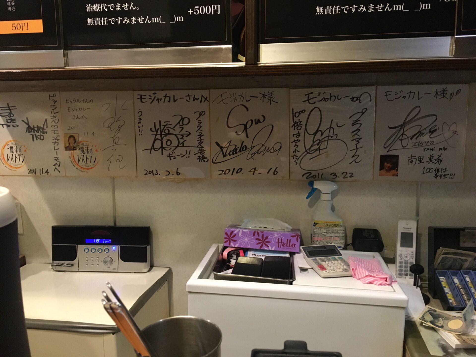 バングラデッシュ語で「美味しい」を意味する「モジャ」が店名。「めっせ熊」など人気店が集中する新大阪の駅ナカグルメ街「味の小路」内にある。カウンター7席のみの小さなお店だが回転は早い。辛さが人気の秘訣で、上限1000倍(+500円)まで辛さ調整できる。
