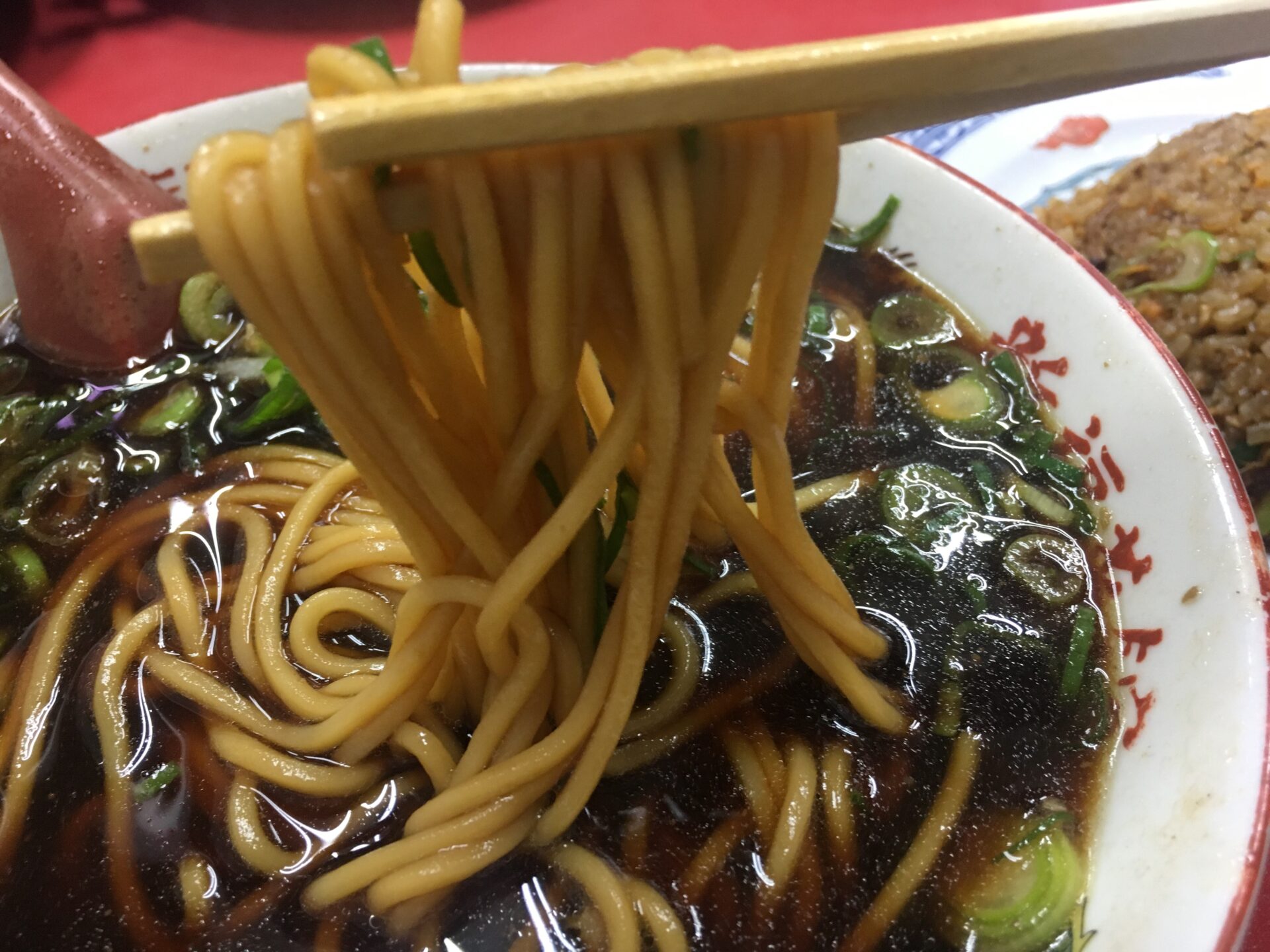 そして、この店の名物が「ヤキメシ」。こちらも黒い。多くの方がラーメンとセットで注文する。こちらも醤油をベースにネギ、たまご、玉ねぎ、刻みチャーシューを炒めた素朴な懐かしい味。醤油の少し焦げた香ばしさは中毒性もある。