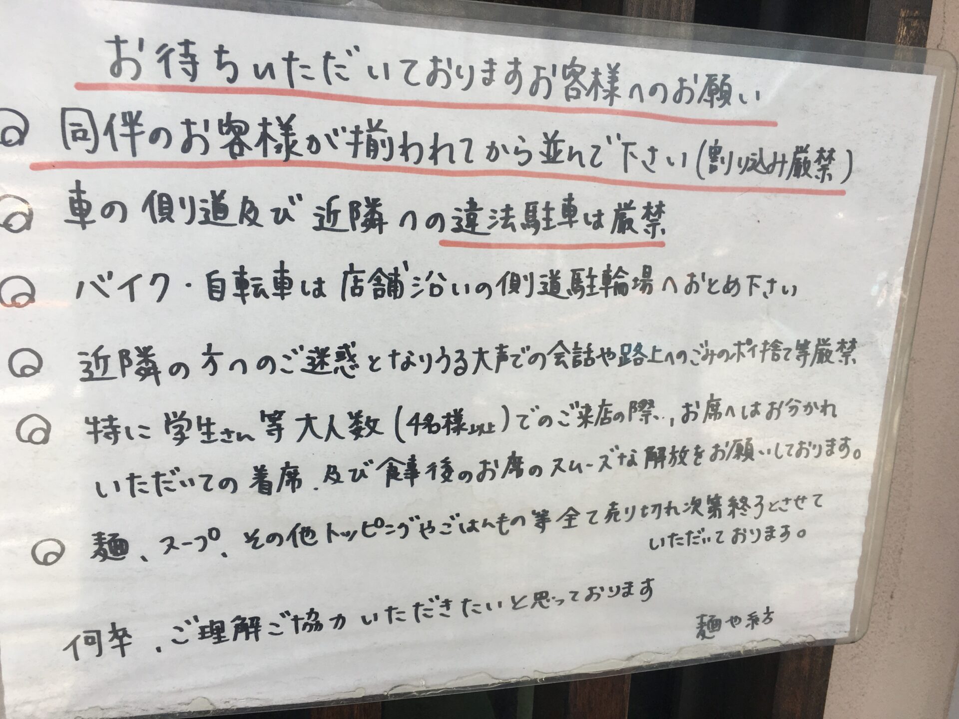 希少価値の高さを感じさせる味。普通に並んでいても、他客の行動次第では怒号に巻き込まれるリスクはあるが、マナーの悪い客を確実に注意してくれる安心感と捉えることもできる。味の面では間違いなく名店なので、北摂地域在住で訪問チャンスの多いガンバ大阪サポーターの方は一度食べておいて損はない。