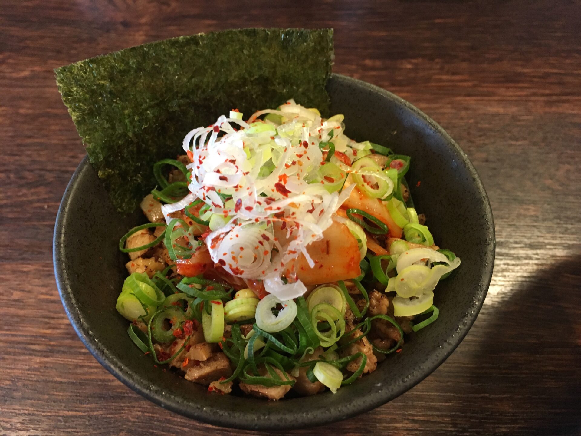 ごはんモノのクオリティも高い。おススメはキムチ丼。炙りチャーシューとキムチの相性は抜群。3種類あるごはんものの中では、キムチ丼とメンマ丼の売り切れが早い。