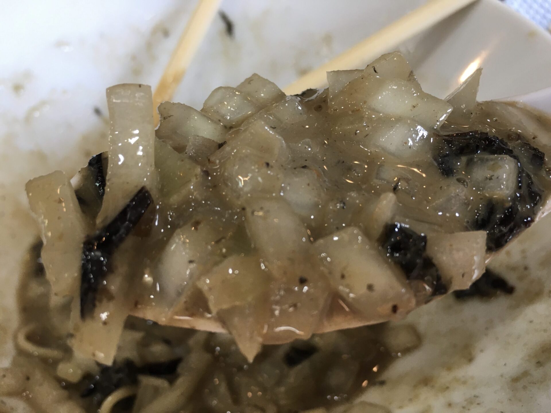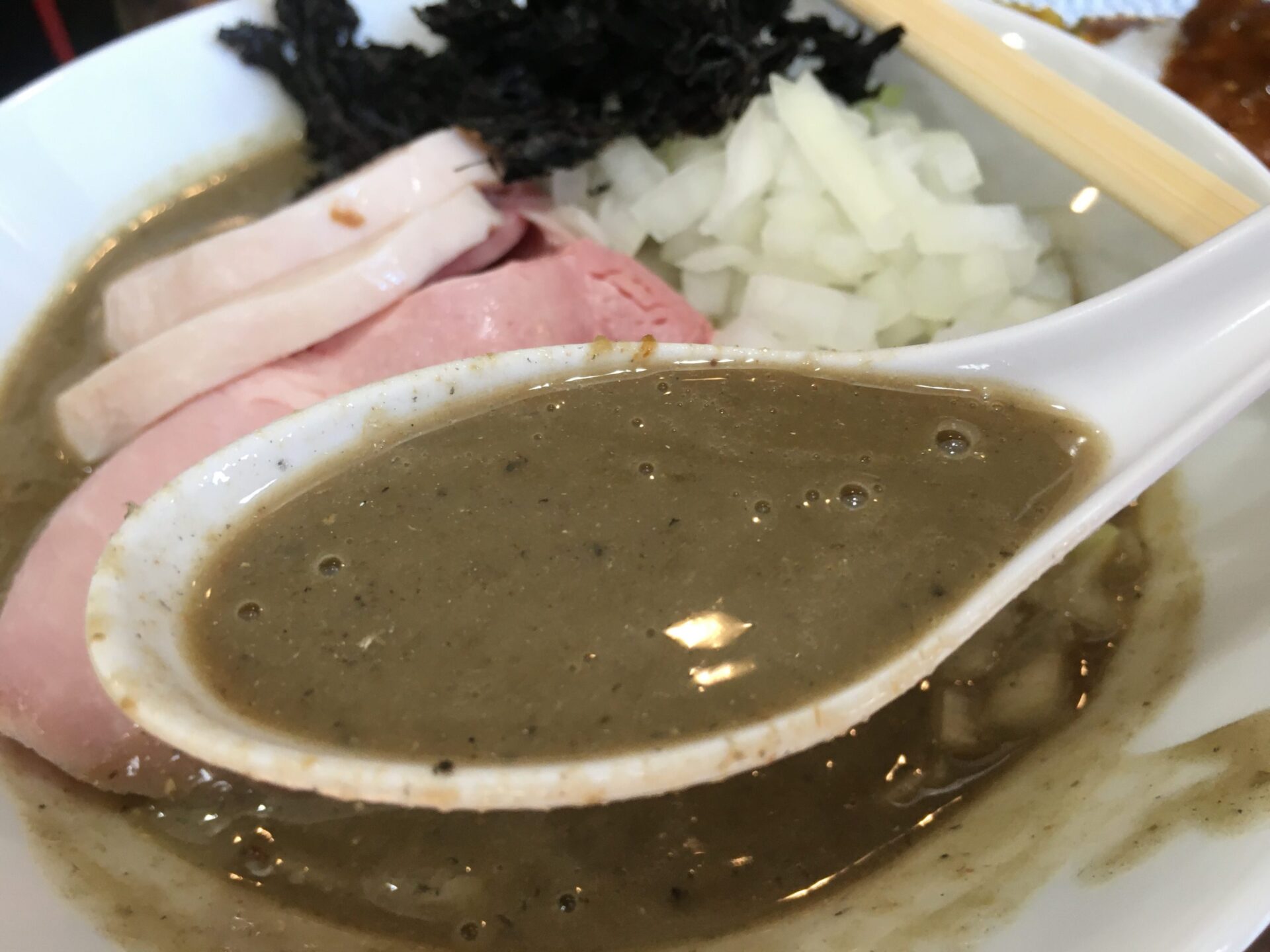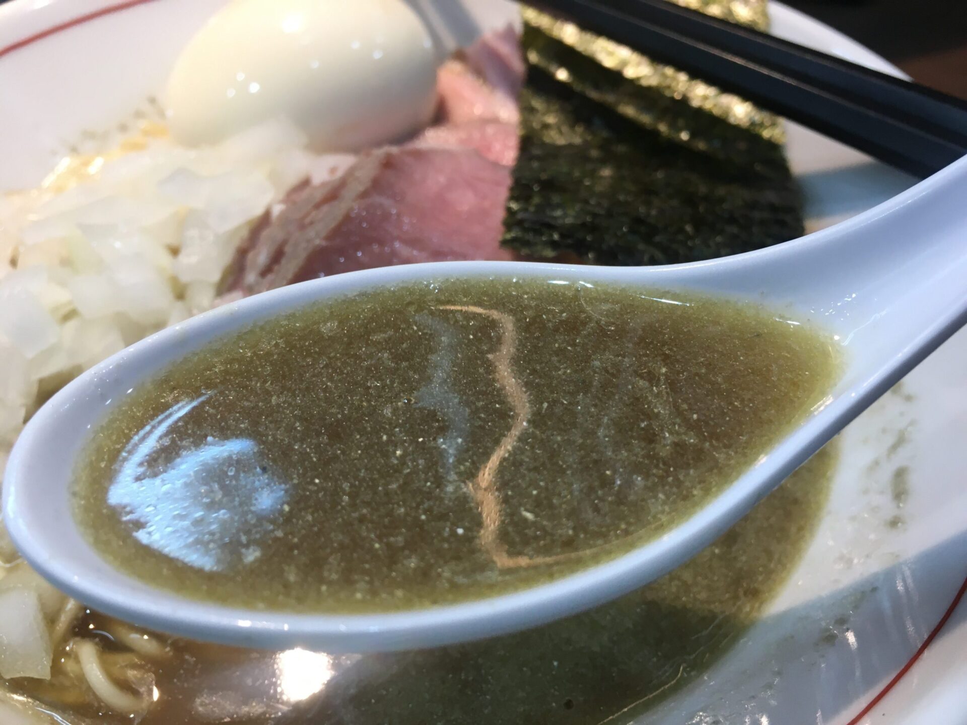 煮干しの味を最も楽しめるメニュー。粘度が高く、途中から混ぜ蕎麦を食べているような状態に。細麺であれほどスープが絡まるラーメンは食べたことがない。濃厚ながらエグみはそこまで感じず、丁度良い旨ビターな味。おすすめのトッピングは玉葱(50円)。麺を食べ終わった後に少し残るスープを吸わせて食べるのが最高。追い飯的な楽しみ方ができる。