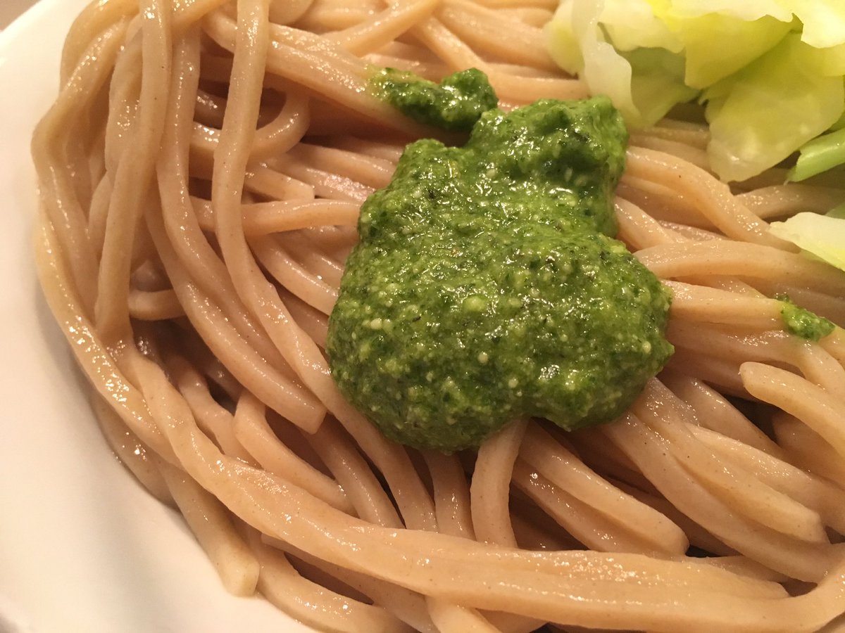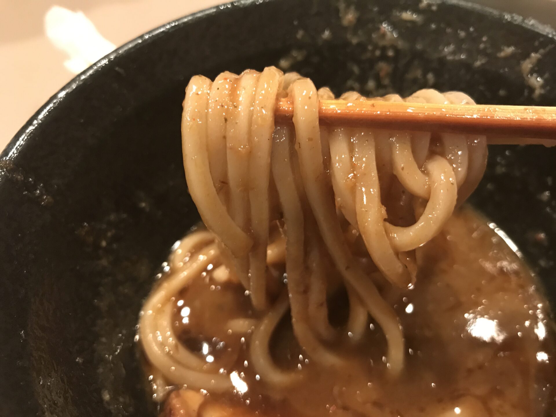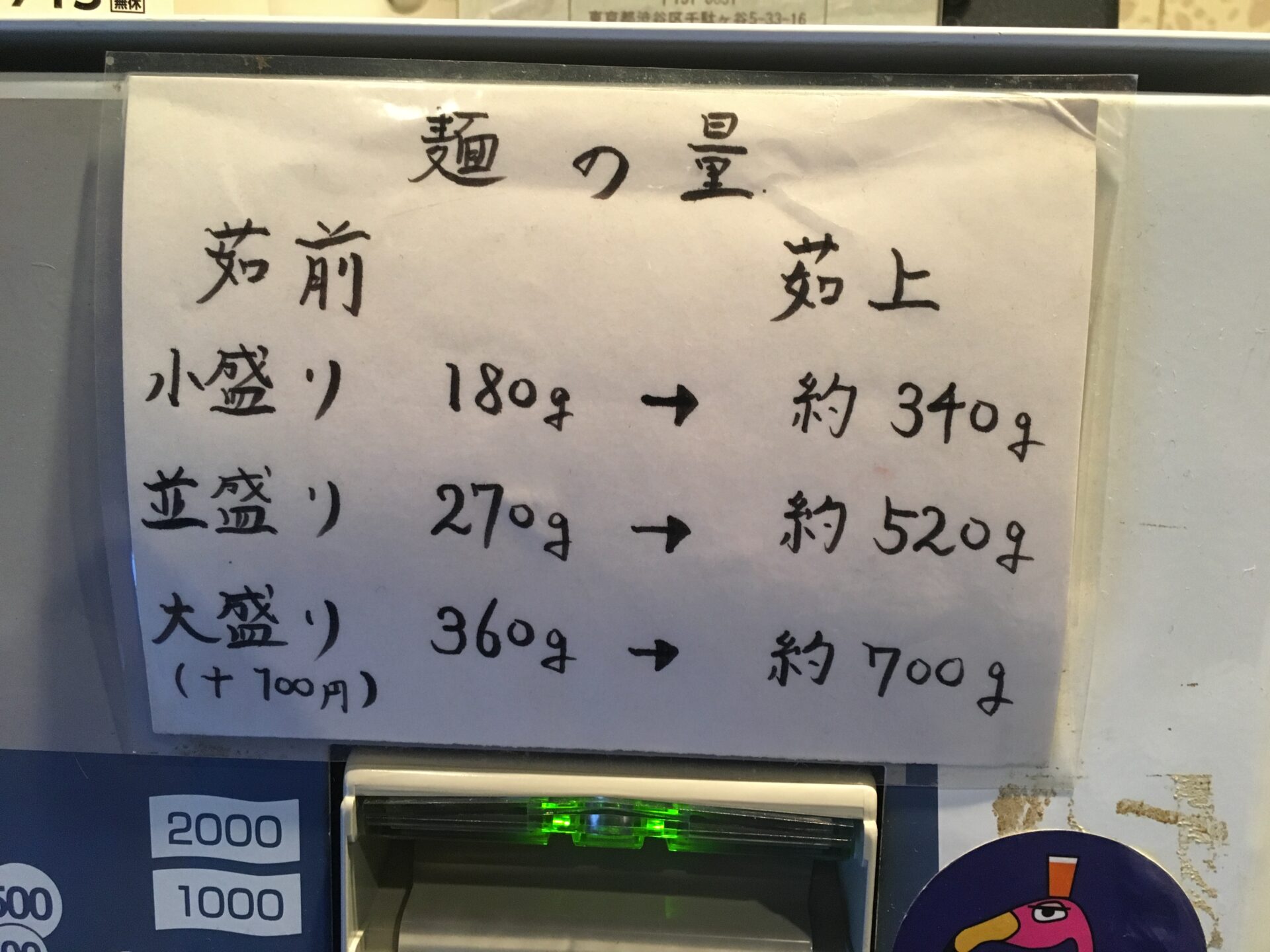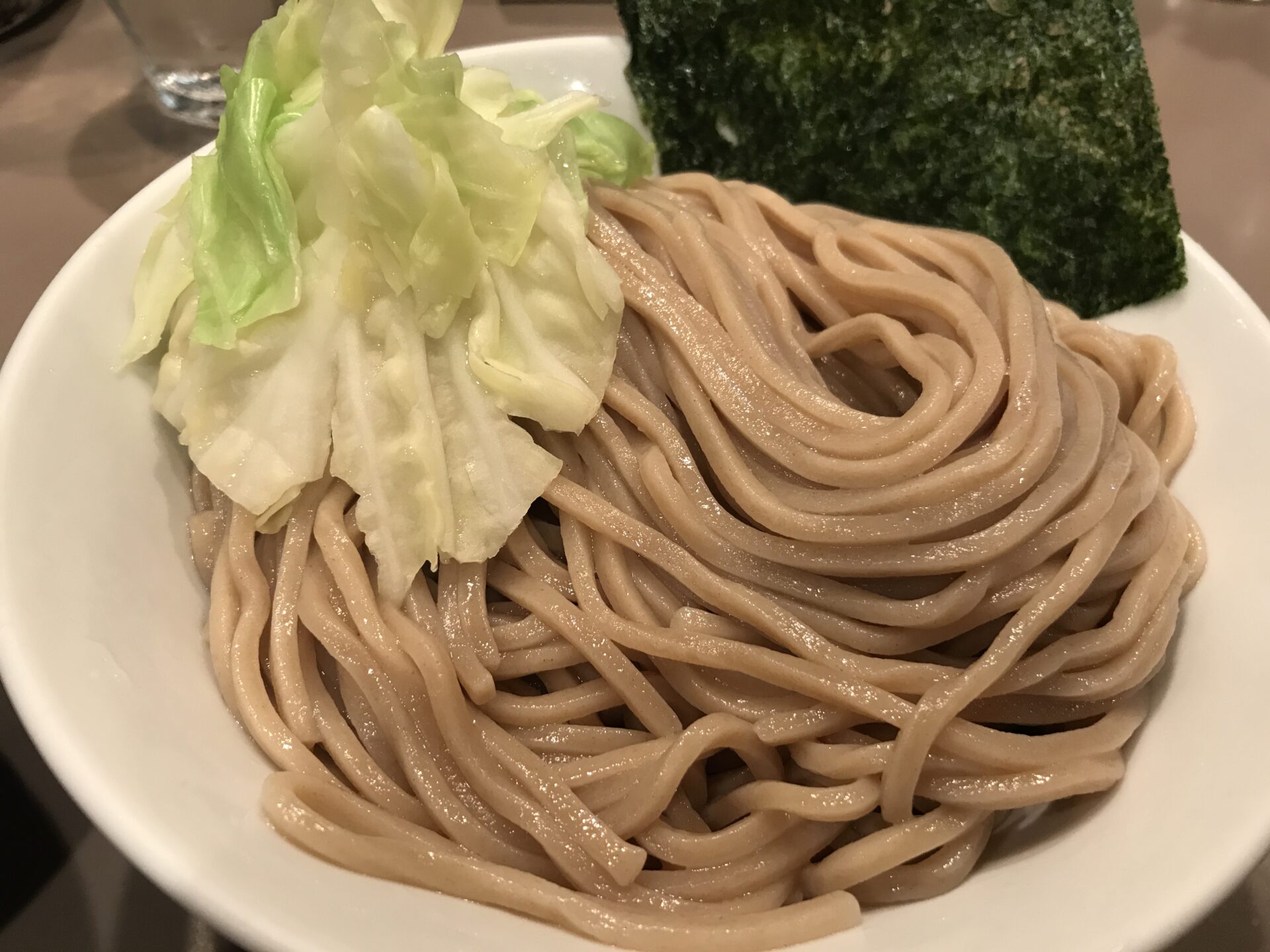 麺は中太でコシが強い。麺のボリュームは小盛りでも一般的より多め。食券を渡すタイミングで店員さんから麺量を質問される。減らした場合は代わりとなるサービスを受けられる。オプションメニューは既述の「キャベツ」の他、「バジルソース」、「モッツアレラチーズ」など個性的。