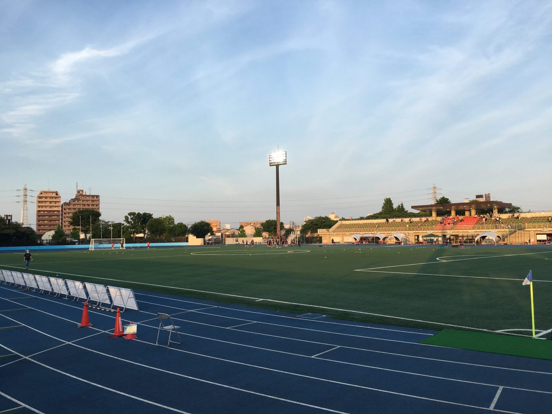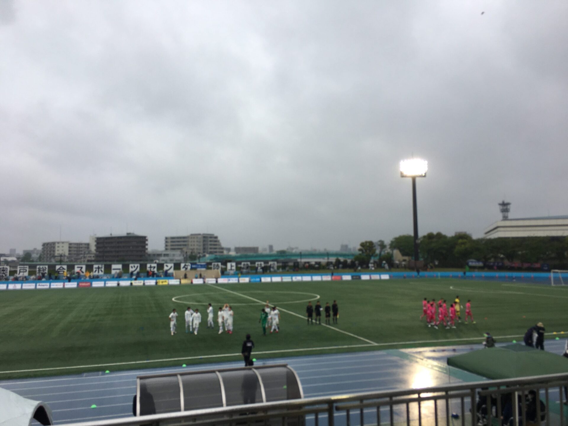 そんな気持ちでサポーター仲間と足を運んだのは、亀有駅からバスで10分程度の所にある「奥戸総合スポーツセンター陸上競技場」。橋本選手や安田選手と同じく昨シーズン終了後、所属クラブから契約満了を告げられた今野泰幸選手(以下、今ちゃん)をはじめ、稲本潤一選手、下平匠選手、安田晃大選手など元ガンバ大阪の選手が多数所属する南葛SCのホームスタジアムだ。